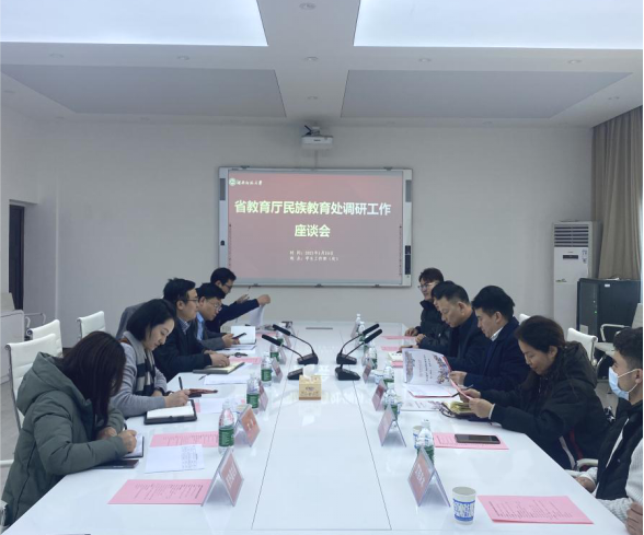 1月19日下午,省教育厅民族教育处处长祁怀好,新疆驻湘工作组党委副书记、教育协调小组组长艾美华,省教育厅民族教育处一级调研员文春华一行3人来校调研少数民族学生教育管理服务工作。会议由学生工作部(处)部(长)向发意主持。