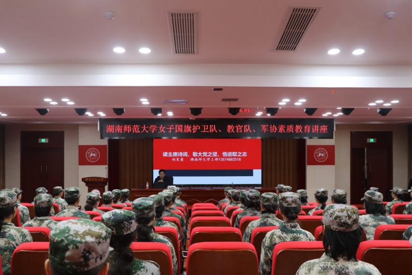 (通讯员 张瀚心 苏静怡)4月1日下午,ok138cn太阳集团学生工作部(处)、武装部素质教育讲座在中和楼开讲,学生工作部(处)、武装部部长向发意担任主讲人,女子国旗护卫队、教官队、军事爱好者协会全体队员参加。