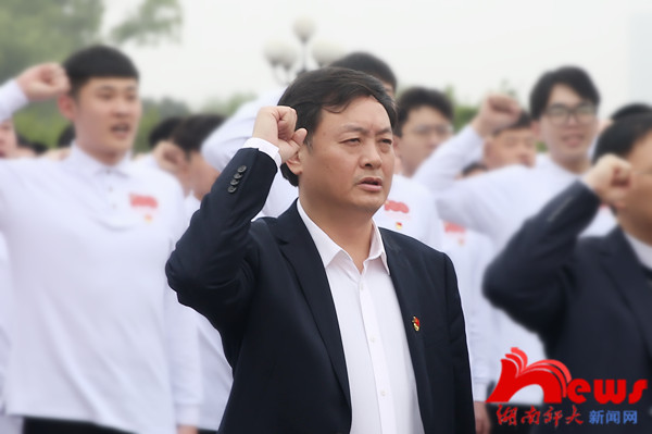 (记者 马铁泉 彭璐)4月29日上午,“青春向党 逐梦潇湘”湖南省大学生集体入党宣誓活动在长沙市橘子洲头、花垣县十八洞村、汝城县沙洲村、湘潭大学毛泽东雕像广场等地同步举行。我校200名学生新党员代表同其他四所高校新党员一起在橘子洲头参加宣誓活动,省委教育工委副书记、省教育厅党组成员王建华领誓,我校党委委员、副校长王辉带领学生党员参加宣誓活动。