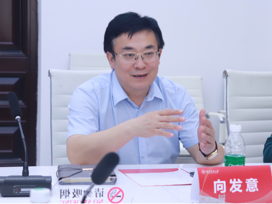 向发意对翁波一行的到来表示欢迎。他简要介绍了学校的历史沿革、学生工作情况。向发意表示,做好学生工作需做到四个坚持:一是坚持“五个一”,加强学生思想政治工作;二是坚持“三条线”,规范学生日常管理工作;三是坚持“三个结合”,优化学生成长服务工作;四是坚持抓好“一支队伍”,发挥专兼职辅导员队伍的骨干力量作用。