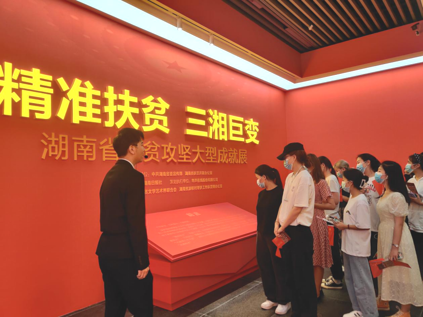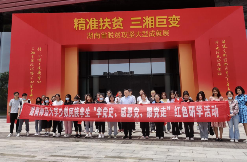 在党史学习教育深入开展之际,6月4日, 我校组织来自全校12个学院40余名少数民族学生代表前往湖南省美术馆,参观“精准扶贫 三湘巨变——湖南省脱贫攻坚大型成就展”,感受三湘大地上这场伟大战役的辉煌。