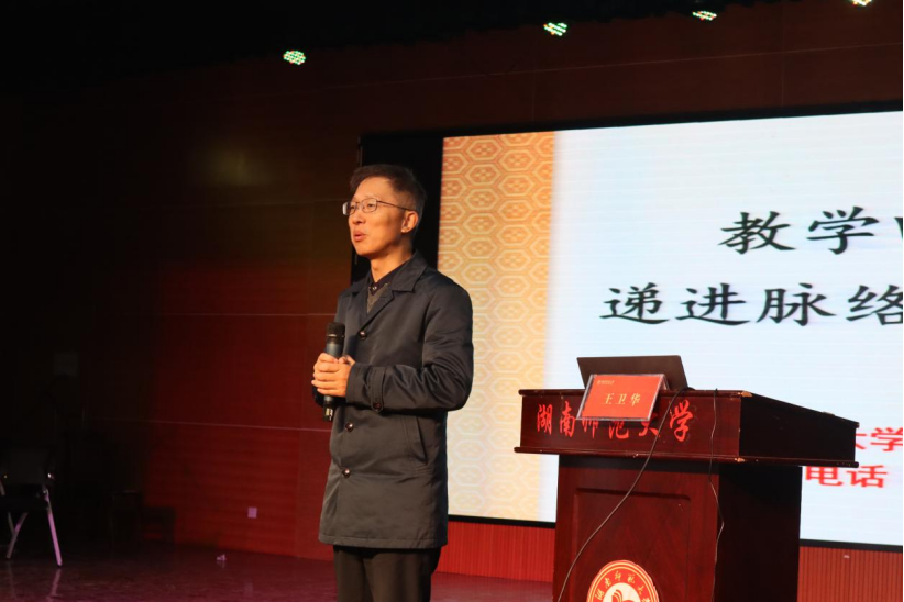 我校教育科学学院王卫华教授以“教学四境界:递进脉络与实现策略”为主题展开讲座。他首先向同学们阐述“适应教学”、“有效教学”、“高效教学”和“魅力教学”的四重境界,强调大学生应当从关注教学技能技巧等“适应教学”中逐步适应提高,最终走到以“人生教学”为目标的“魅力教学”阶段。在逐一解释了教学境界递进的脉络后,王卫华以“思想教学”境界的递进策略为结尾,鼓励同学们形成“教师自觉”,明确自身教学水平,制定合理方向,练好基本功,以广博的学识、有趣的见闻引导学生,最终实现“魅力教学”的终极阶段。