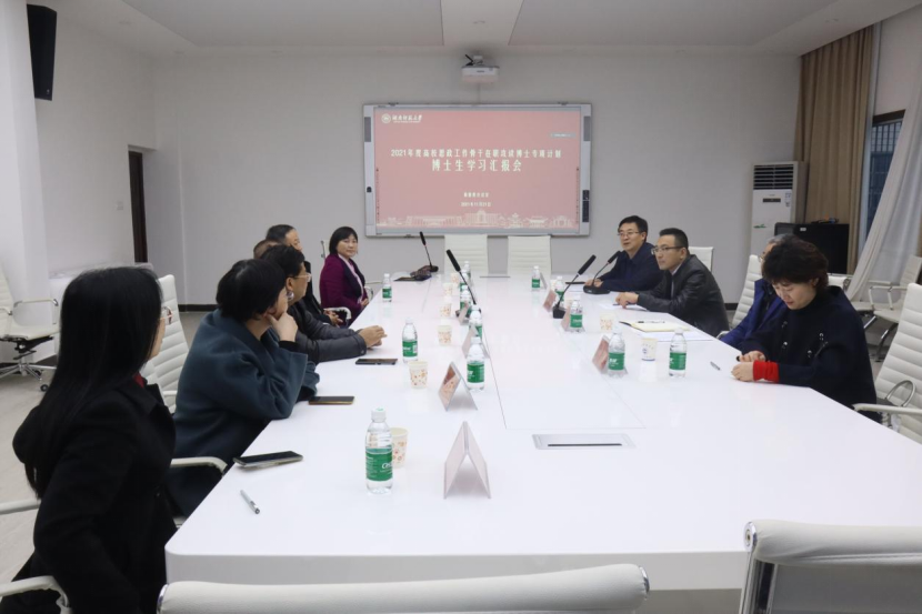 (通讯员 张瀚心 陈榕 张欣)11月21日上午,我校在励德楼召开2021年度高校思政工作骨干在职攻读博士专项计划博士生学习汇报会。省委教育工委宣传部二级调研员陈解,我校党委副书记周俊武,研究生院党委书记龚舒出席会议。会议由学生工作部(处)部(处)长向发意主持。