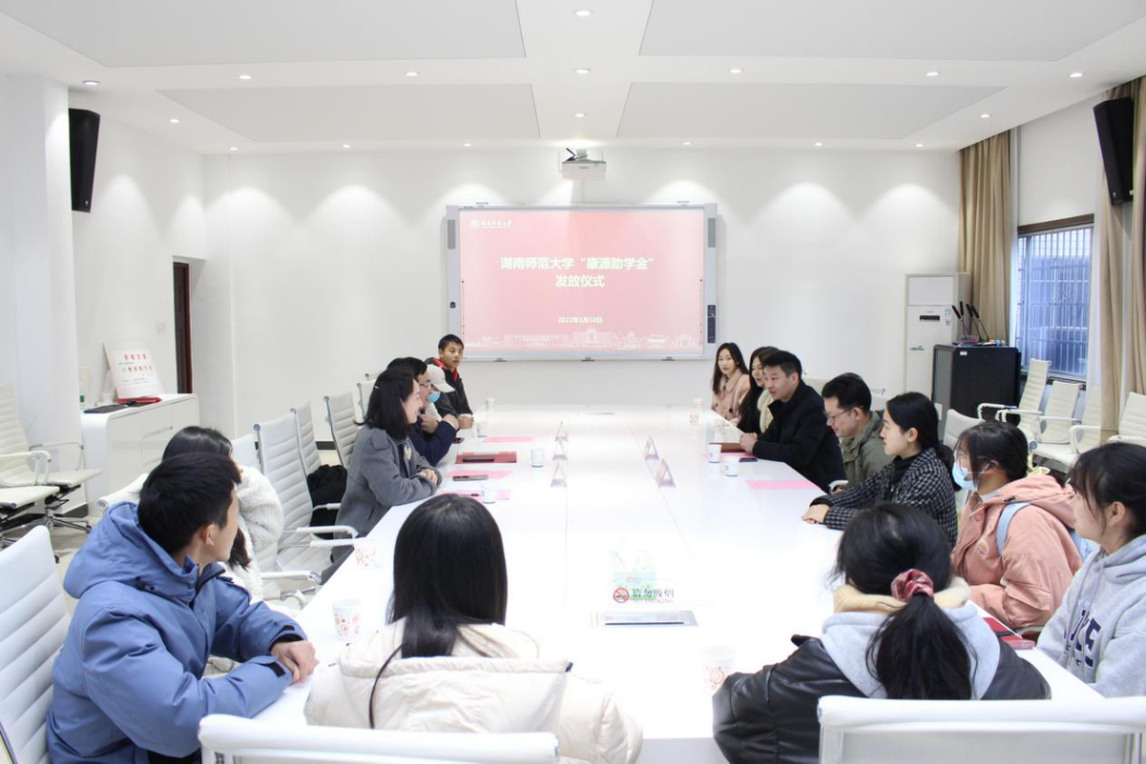 (通讯员 陈榕 谭湘玉 赵一奇)1月10日中午,我校于励德楼会议室顺利举行“康源助学金”发放仪式。湖南康源制药有限公司销售部经理赵涛,器械部经理李滋,我校学生工作部(处)部(处)长向发意,教育基金会副秘书长刘芸玲出席仪式。仪式由学生工作部(处)副部(处)长彭露主持。