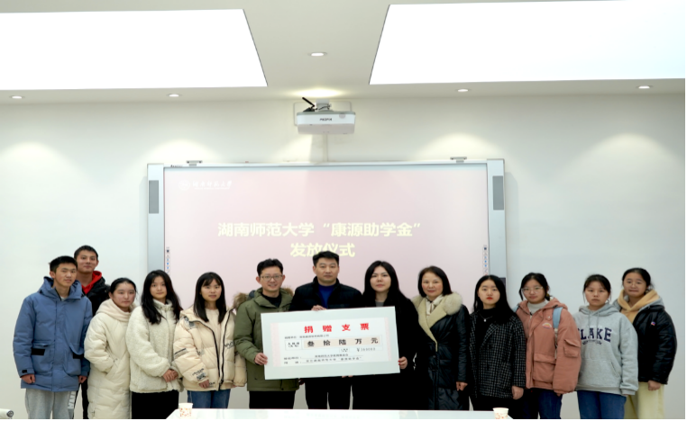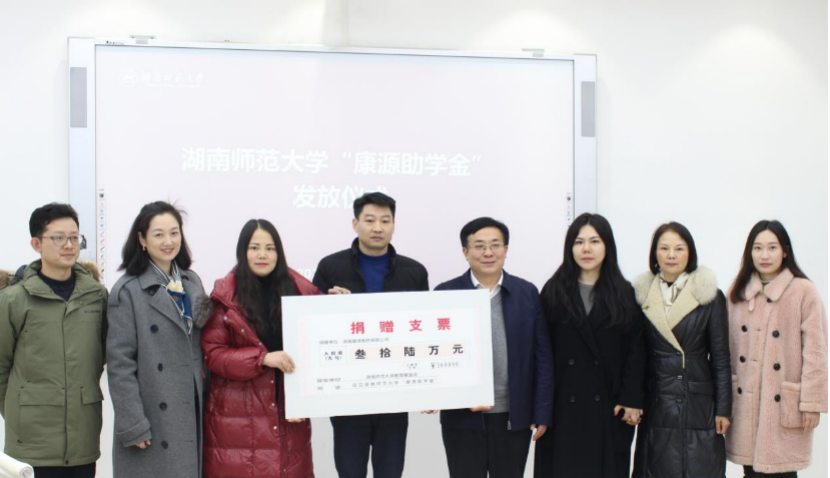 据悉,“康源助学金”由湖南康源制药有限公司于今年1月在我校设立,旨在进一步支持我校教育事业发展,帮助家庭经济困难学生健康成长顺利成才。全校资助名额共10名,资助对象为2021级全日制已建档家庭经济特别困难的本科学生,资助资金标准为每人每月1000元,连续资助三年。