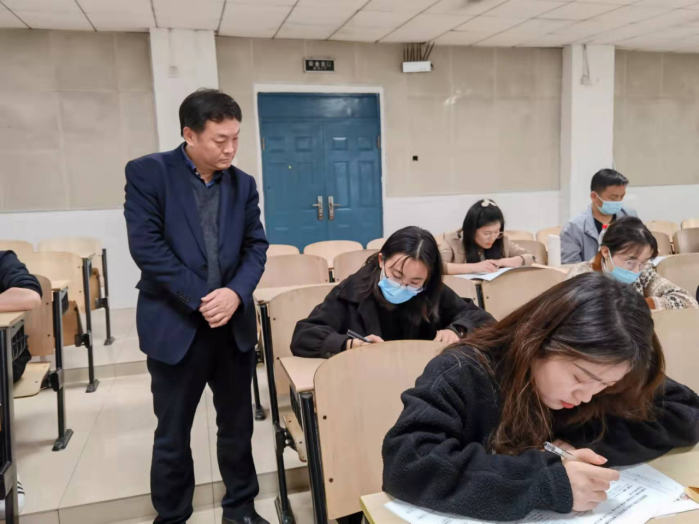 (通讯员 陶迎春 周美香 张欣)3月10日下午,我校第九届辅导员素质能力大赛笔试于至善楼110教室举行。副校长王辉到笔试考场巡考。