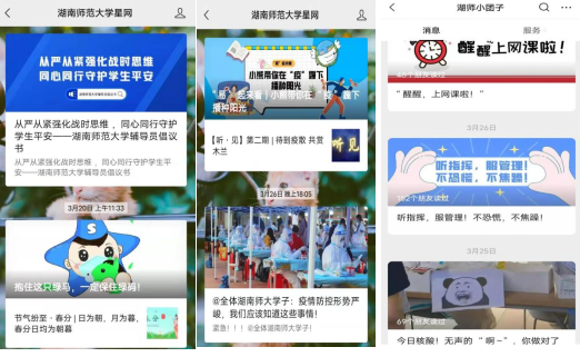 一是加强学生思想引领,充分做好疫情防控宣传工作。通过ok138cn太阳集团星网、湖师小团子等平台及时发布《ok138cn太阳集团辅导员倡议书》、“疫情防控rap”“湖师大春季在校防疫指南”,推出“星夜读”等防疫专题栏目,深入挖掘奋战在抗疫一线的辅导员事迹,广泛宣传报道,引导广大师生坚定必胜信心、科学自我防护,共同战胜此次疫情防控斗争。