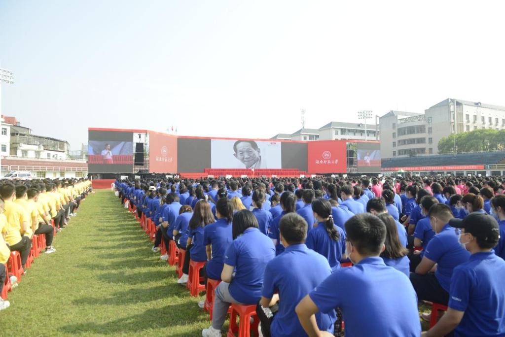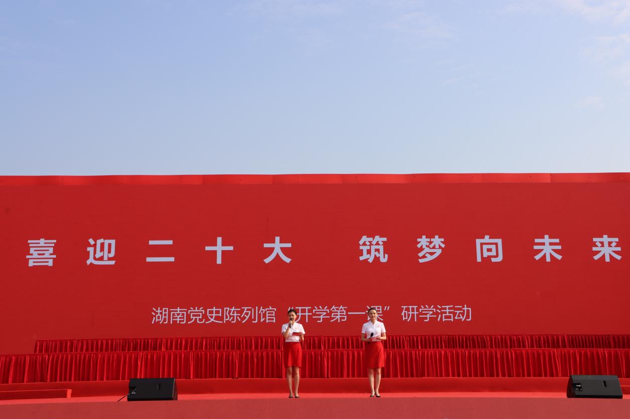 (通讯员 周意 丁家宜 任然 钟璐静 朱榕峰 何伊婷 张厚扬)9月16日上午,我校在二里半校区体育场举行“喜迎二十大,筑梦向未来”———新生党史国情教育暨湖南党史陈列馆“开学第一课”教育研学活动,湖南党史陈列馆馆长朱习文、副馆长陈艳出席。活动由湖南党史陈列馆红色故事宣讲团讲解员向璐、董青主持。