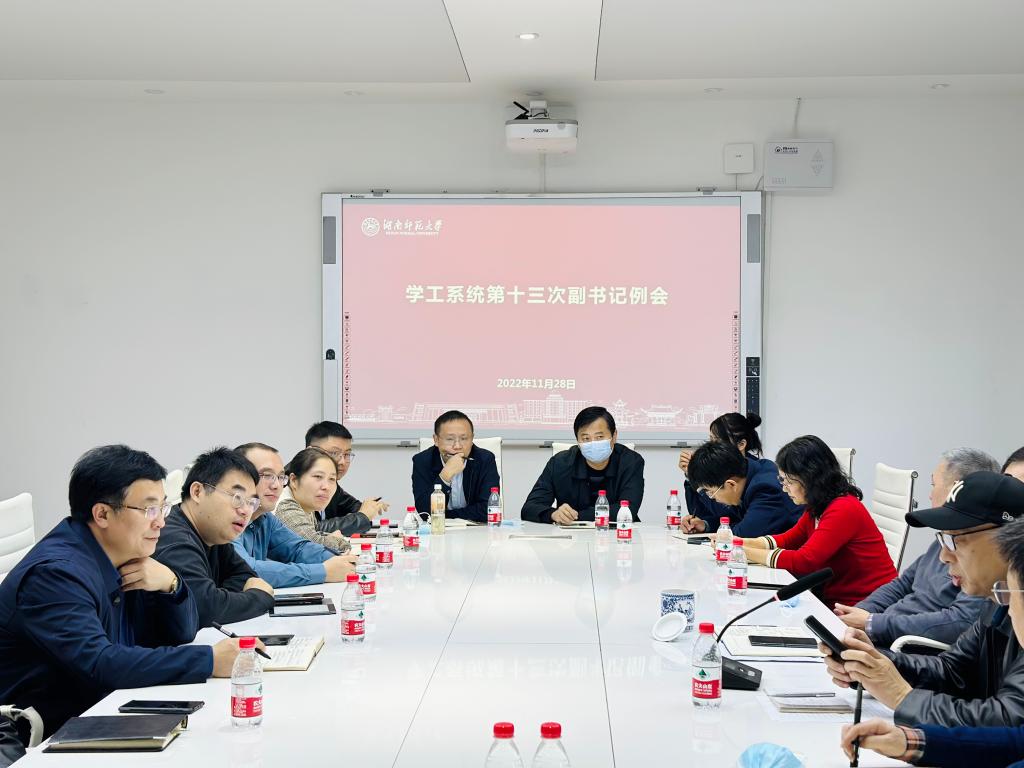 (通讯员 宋嘉帅)11月28日上午,我校2022年第十三次学生工作例会在励德楼学工部会议室召开,副校长王辉出席并讲话,会议由学生工作部(处)部(处)长向发意主持。