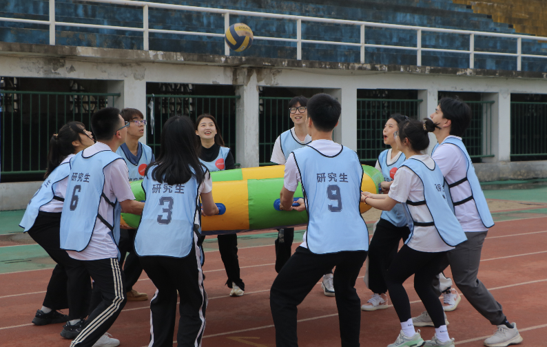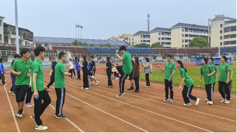 在团队风貌展示环节,各学院代表队用队旗、队名、口号及才艺充分展示本队的实力和特色,博得现场阵阵掌声和欢呼声。在珠行万里、众星捧月、跳长绳、袋鼠跳等比赛项目中,各学院队伍齐心协力,互帮互助,奋勇拼搏,满怀信心,在操场上大显身手,现场氛围活跃热烈。
