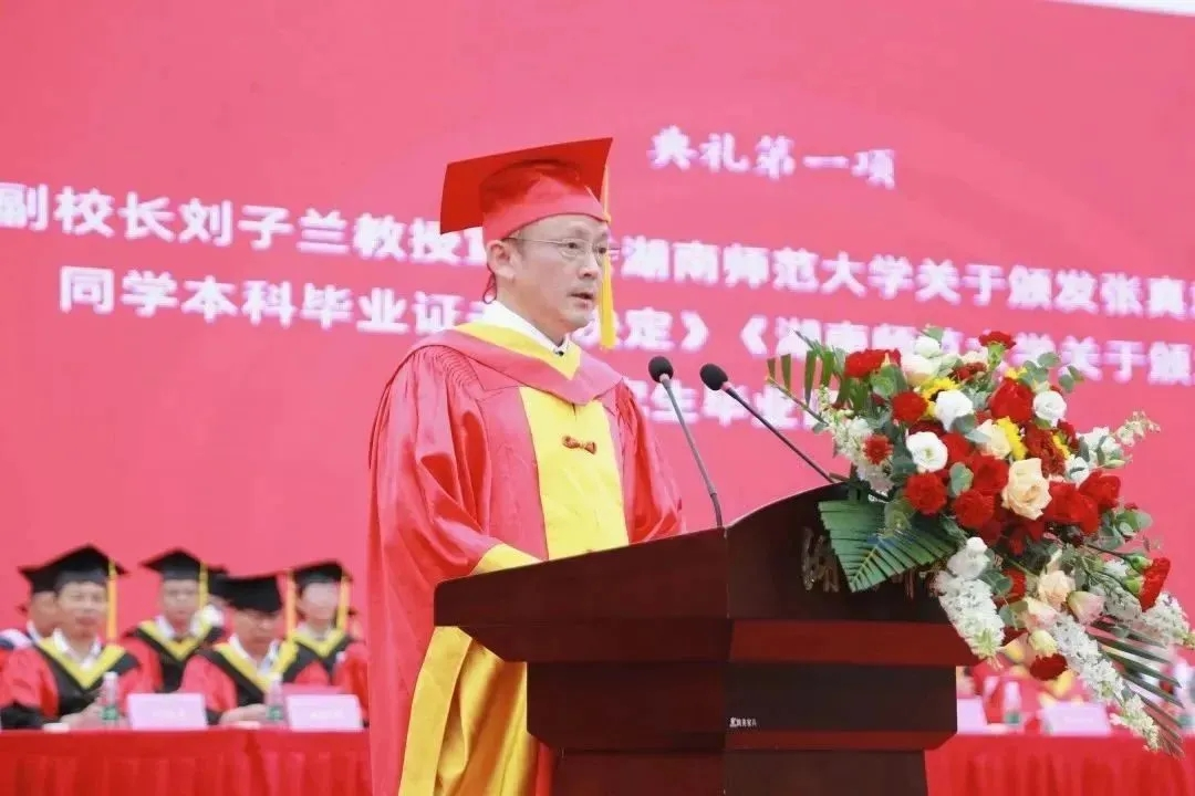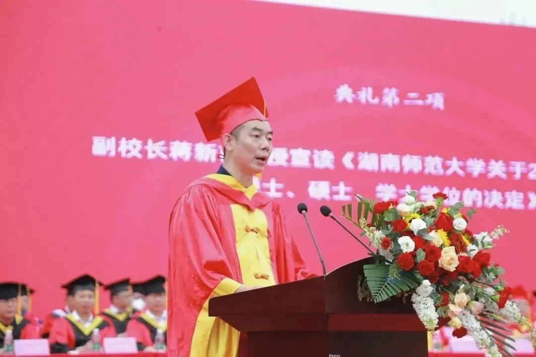 欧洲科学院院士、校党委书记蒋洪新教授向毕业生表达衷心的祝愿。他回顾几年来我校经历的风雨与挑战,并提出三点希望:一是要胸怀“国之大者”,激扬青春梦想,爱国,是人世间最深层、最持久、最伟大的情感,希望大家以此为念,仰望星空,心存梦想,脚踏实地,善作善成,将爱国情、强国志、报国行融入青春梦想;二是要锤炼过硬本领,汇聚青春力量,博观而约取,厚积而薄发,希望大家继续保持对世界的好奇、对知识的渴求、对真理的探索,继续不断地提升自我、突破自我、成就自我,集聚起奔涌磅礴的青春力量;三是要勇于实干担当,书写青春华章,面对学业、事业与家庭的多重压力,可能少不了会委屈、困惑和不安,希望同学们少些抱怨,多一些调整和适应,心存一份感恩,保持一份热情,机遇总会眷顾那些正直、善良、且务实的人。