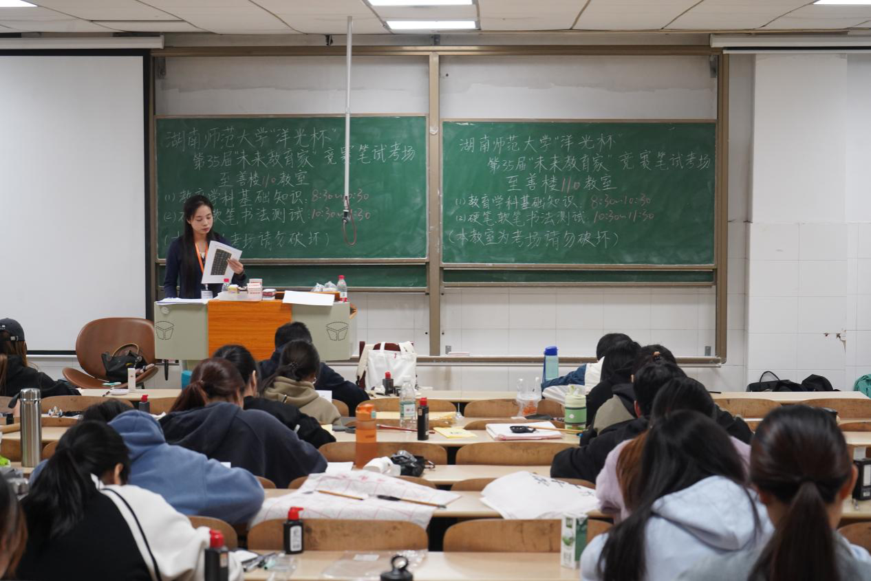 (通讯员 羊思学 杨梅 许菁媛 叶浩然 张馨月)10月22日,我校“洋光杯”第35届“未来教育家”竞赛教育学科基础知识与硬笔、软笔书法测试(第二轮)和训练班结业论文测试(第一轮)于至善楼顺利举行。学生工作部(处)副部(处)长罗元到考场巡考。