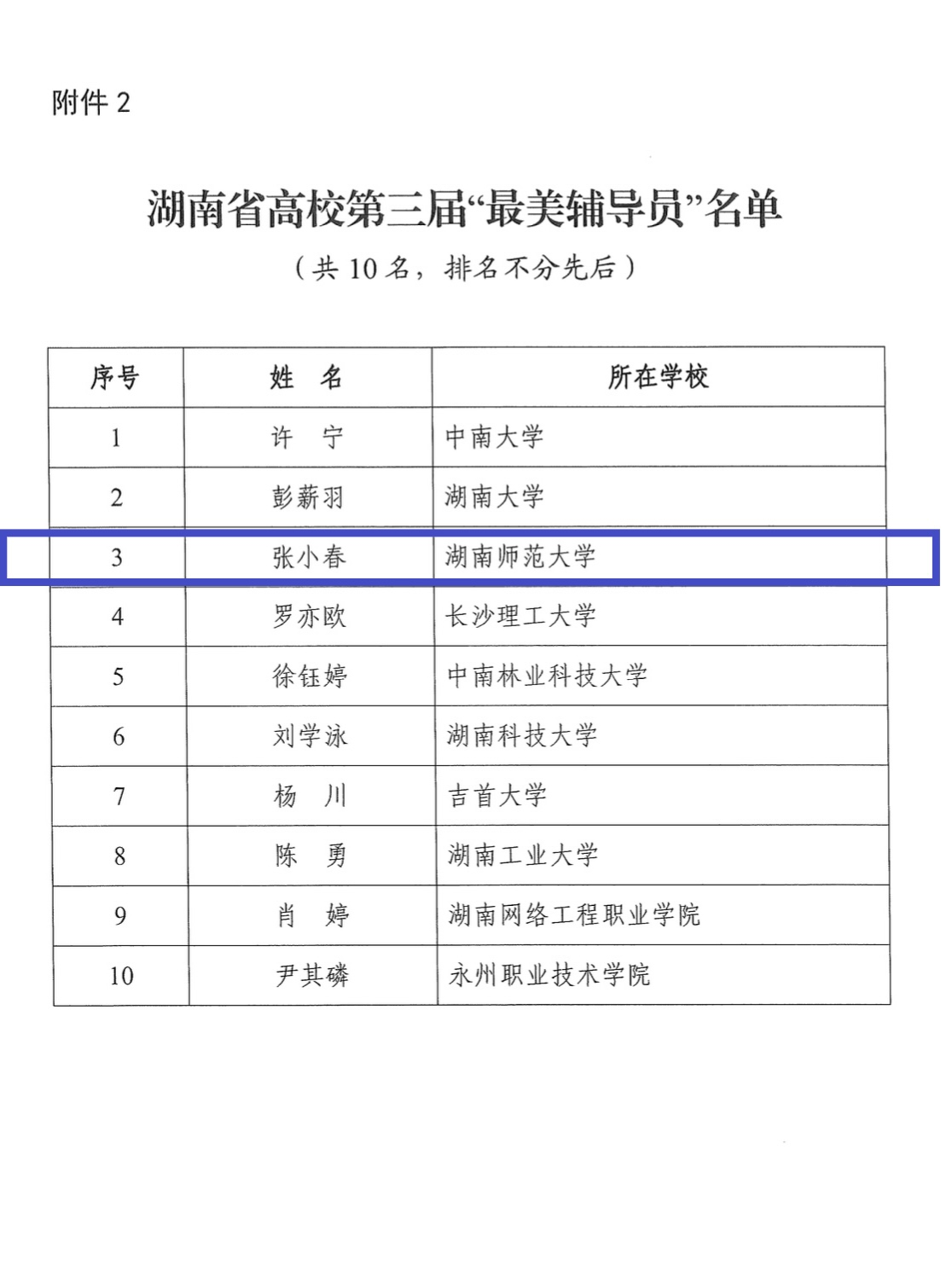 湖南省高校第三届“最美辅导员”