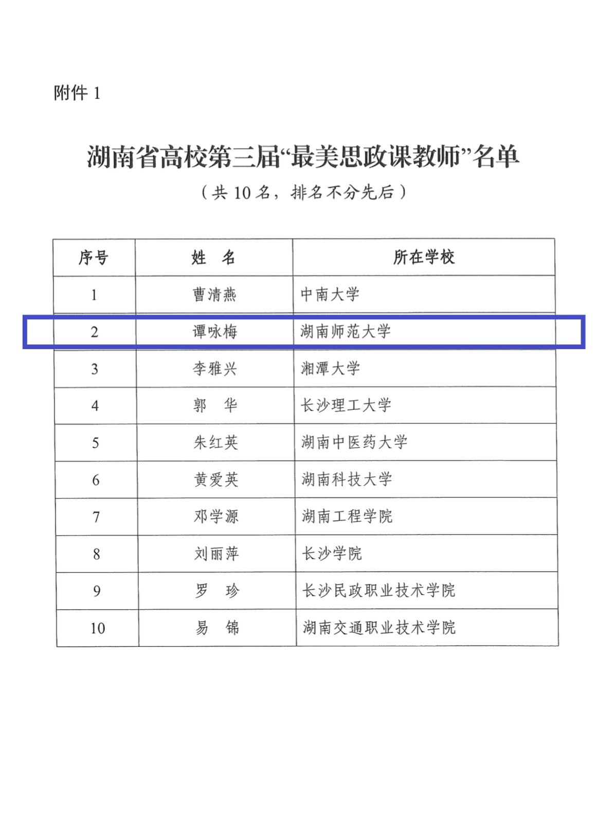 湖南省高校第三届“最美思政课教师”