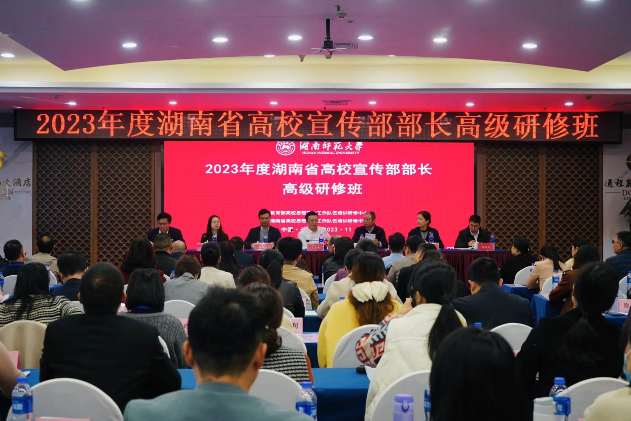 (通讯员 曾冰芳 任晨羽)11月15日上午,由湖南省高校思想政治工作队伍培训研修中心(ok138cn太阳集团)承办的2023年度湖南省高校宣传部部长高级研修班在我校顺利开班。省委教育工委宣传部部长甘文波、我校党委副书记周俊武出席开班仪式。仪式由学生工作部(处)副部(处)长彭露主持。