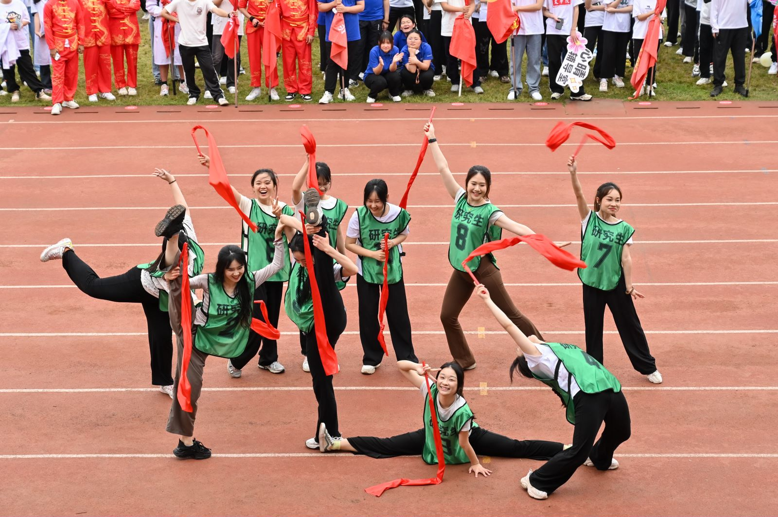 裁判员代表、体育学院2021级本科生蒋盼盼,运动员代表、化学化工学院研究生杜兰分别上台宣誓。