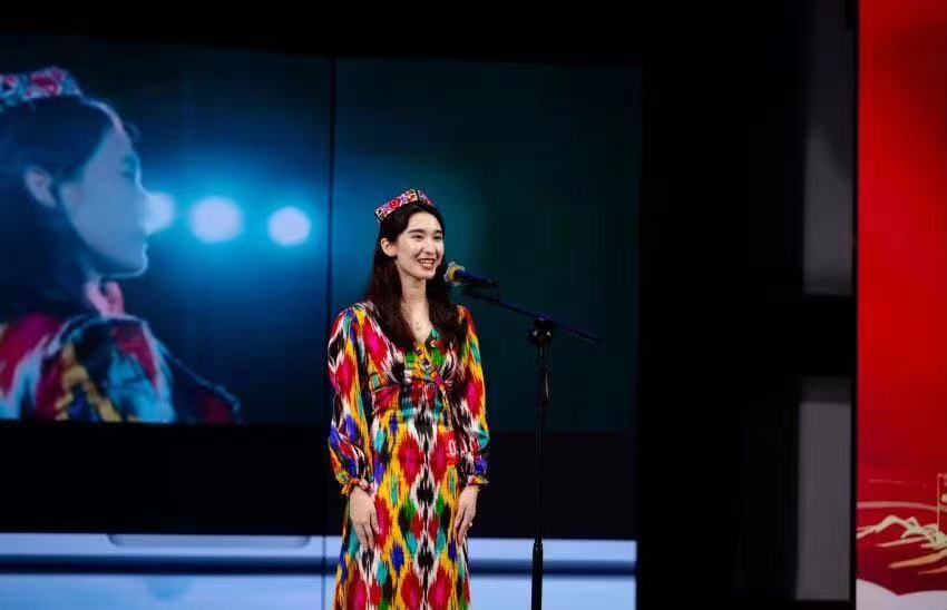 麦斯塔乃·雪拉提作为高校组选手上台演讲。她从日常在校园水果店“买石榴”的生活细节出发,引出湖南与新疆之间深厚的历史渊源,运用“人与人的相遇”“情与情的相遇”“梦想与现实的相遇”三组关键词,形象揭示了“新湘遇”的主题内涵,抒发为中国式现代化挺膺担当的青春心声。