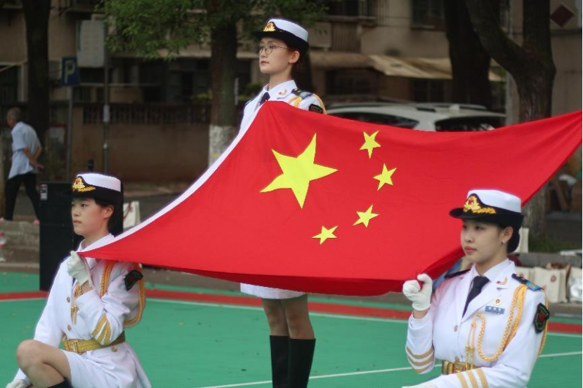 (通讯员 姑丽 何燕)为引导师大学子弘扬爱国主义精神,筑牢“爱我国防”意识,以最饱满的状态迎接2024级本科新生军训,9月11日上午,我校在二里半校区、南院校区、咸嘉湖校区、桃花坪校区、张公岭校区同步举行“砺志笃行启新篇 筑梦国防谱华章”五校区同升国旗暨2024级本科新生军训动员大会。学生工作部(处)、武装部副部长彭露出席南院校区主会场升旗仪式,各学院党委副书记、新生辅导员参加了所在校区的升旗仪式。