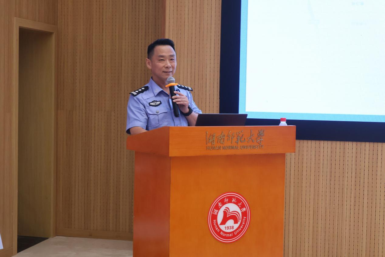 长沙市公安局岳麓分局桔子洲派出所民警杨德君从同学们感兴趣的游戏、购物、交友等角度,讲解电信诈骗的常用手段及防范方式。他深入分析了犯罪分子是如何利用受害者心理以及作案手段的复杂程度,旨在警醒学生不要成为电信诈骗的“帮凶”。讲解结束后,辖区派出所民警的防身解脱技巧展示更是赢得同学们的阵阵掌声。