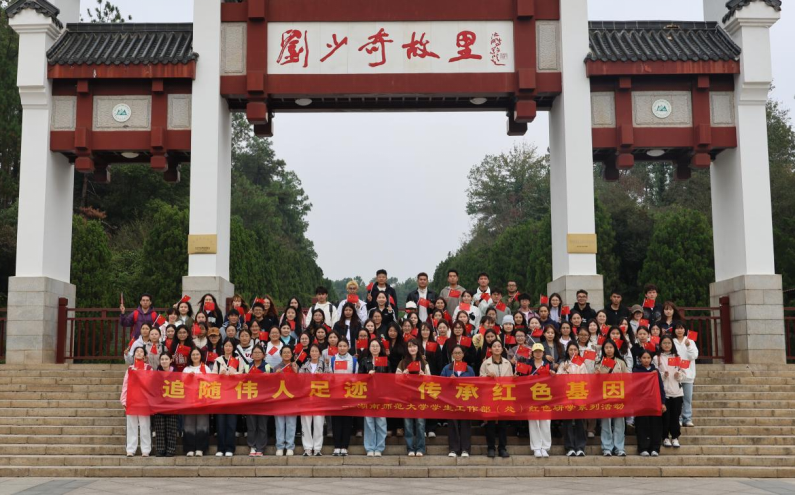 (通讯员 杨芯悦)为引导我校青年学子追寻老一辈无产阶级革命家的光辉足迹,传承红色基因,树立新时代爱国主义精神,铸牢中华民族共同体意识,10月27日,学生工作部(处)组织来自14个学院的100余名各民族学生代表赴韶山毛主席故居和花明楼刘少奇故居开展“追随伟人足迹传承红色基因”爱国主义教育红色研学活动。