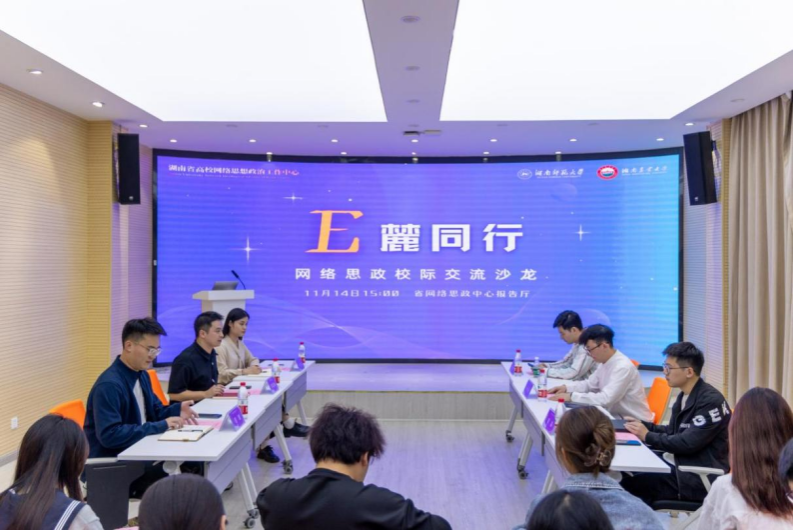 据悉,“E麓同行”网络思政校际交流沙龙系湖南省高校网络思想政治工作中心重点打造的品牌活动,今后依托湖南省高校网络教育名师培育支持计划,以“名师宣讲+师生互动”的形式,以“实地调研+座谈交流”的方式,将网络思政工作经验“引进来”“走出去”相结合,着力推动省内外高校网络思政交流合作,不断创新网络思政队伍建设、人才培养、作品产出等方面机制,以期不断拓宽湖南省高校网络思政工作的“朋友圈”,着力培育湖南省高校网络思政的青春新力量。
