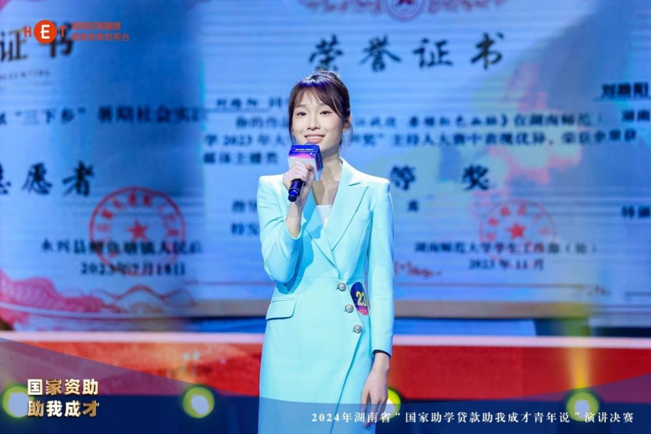12月13日,2024年湖南省“国家助学贷款助我成才青年说”演讲活动决赛在长沙举行。本次活动由湖南省教育厅主办,湖南省学生资助管理中心、湖南教育电视台承办。活动自启动以来,经历初赛、预选、决赛三个阶段,经过层层选拔,30名选手进入决赛,我校新闻与传播学院刘路阳同学在决赛中以总分第二的优异表现荣获一等奖。