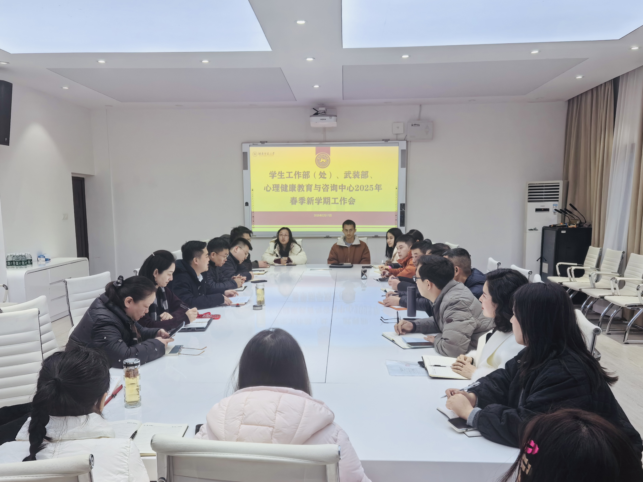 2月17日上午,学生工作部(处)、武装部、太阳集团tyc9728教育与咨询中心春季新学期工作会议于励德楼会议室召开。会议由学生工作部(处)部(处)长、武装部部长陈文雄主持。