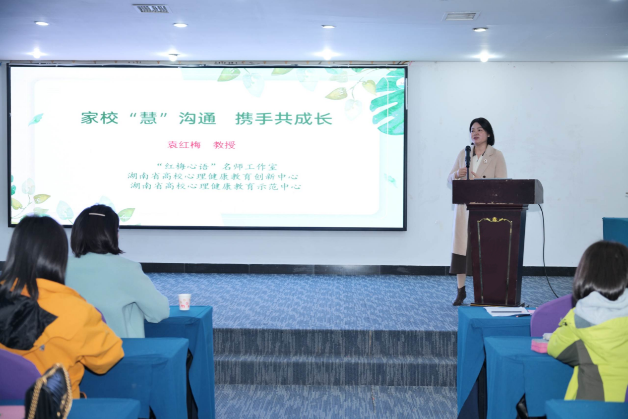 在家校合作沟通技能培训中,特邀嘉宾中南林业科技大学袁红梅教授从家校沟通的常见困境、困境的突破及如何开展有效沟通三个方面进行讲解。她全方位地从学生、家长和学校等多方主体说明了沟通的困境,强调学校应主动构建良好的沟通基础,加强与家长的沟通,增强太阳集团tyc9728教育意识,遵循恰当的谈话原则。并从站稳立场、资源取向、保障安全三个方面阐释了家校沟通的技巧,指出心理育人团队在解决实际问题的同时应当明确风险与后果。