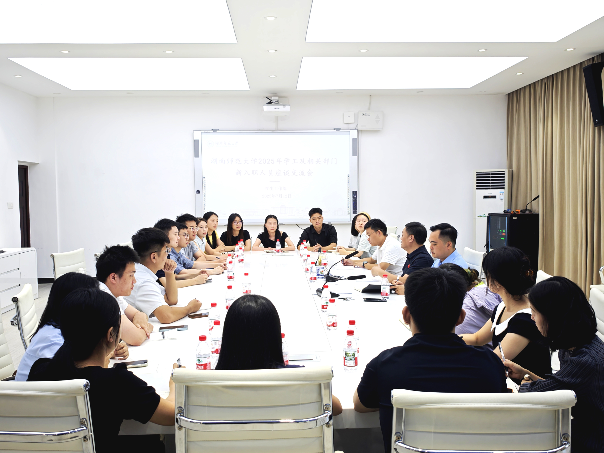 会议结束后,陈文雄宣读2025年新入职辅导员分配方案,各学院党委副书记参会并与新入职辅导员交流。