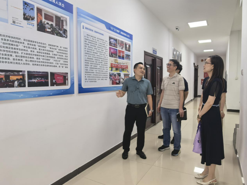 2025年9月9日,湖南省学生资助管理中心主任马兰花、副主任戴志兵等一行三人莅临我校,就学生资助工作的开展情况进行专题调研。学生工作部部长陈文雄、副部长段婷,工程与设计学院党委书记梁勇陪同调研,学生资助管理中心工作人员及相关学院辅导员老师参加调研座谈会。