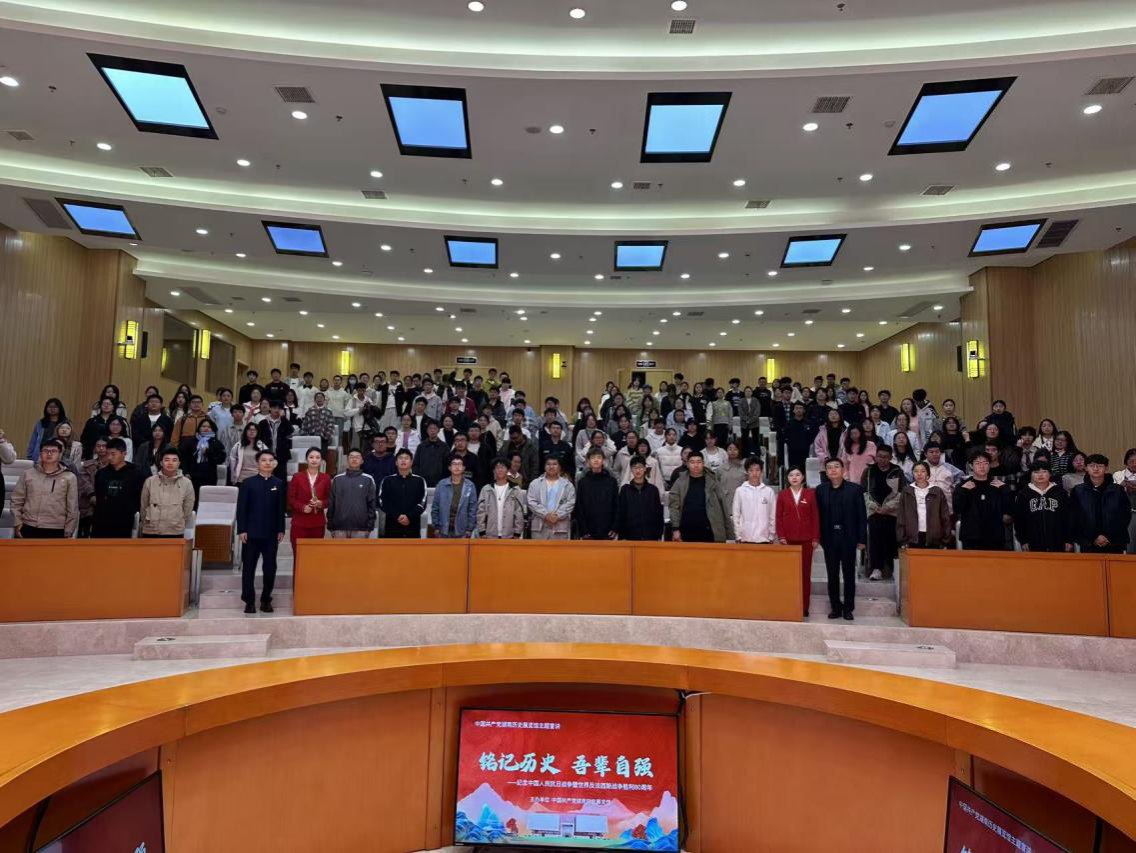 (通讯员 李绮文 刘安芮)10月23日晚,我校学生工作部联合中国共产党湖南历史展览馆宣教部在图书馆报告厅开展“铭记历史 吾辈自强——纪念中国人民抗日战争暨世界反法西斯战争胜利80周年”党史第一课研学活动。活动由学生工作部副部长罗元主持,新生代表180余人参加。