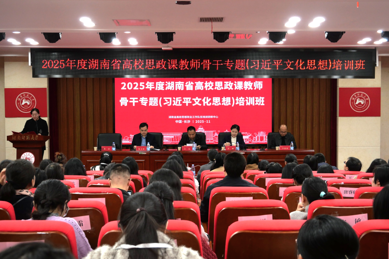 (通讯员 彭霖钢 陈星宇 周紫欣 洪禹姿)为全面提升思政课教师专业素养和教学能力,推动新时代思政课高质量发展,11月11日上午,2025年度湖南省高校思政课教师骨干专题培训班开班仪式在我校中和楼129报告厅顺利举行。湖南省委教育工委宣传部部长、省教育厅思政处处长许抗,我校党委副书记、教授段巍,学生工作部、武装部部长陈文雄,马克思主义学院党委书记李泳波出席活动。开班仪式由学生工作部、武装部副部长段婷主持。