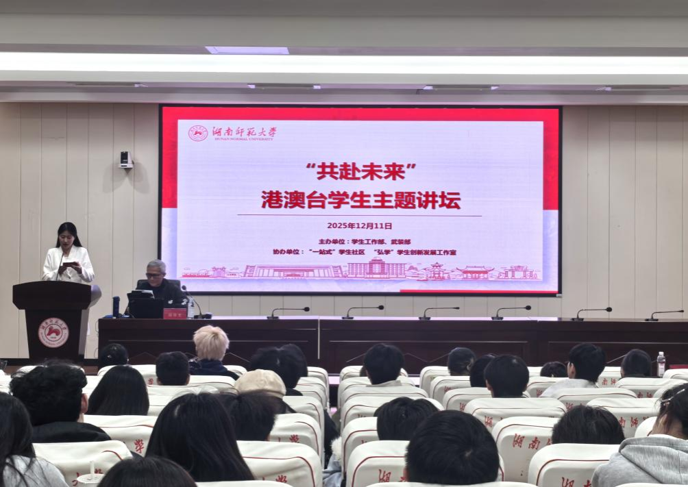 历史文化学院周秋光教授以《湖南人与湖湘精神》为主题,系统梳理湖湘文化的发展脉络及精神内核,解读湖湘精神中“心忧天下、敢为人先”的时代价值,深化港澳台学子对中华优秀传统文化的理解与认同。