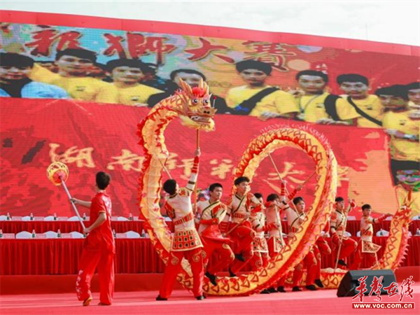 体育学院龙狮团进行表演