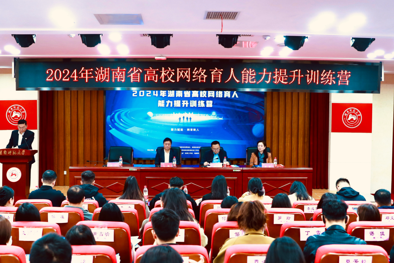 为认真学习贯彻习近平新时代中国特色社会主义思想,深入实施“时代新人铸魂工程”,进一步提升高校网络育人工作队伍理论研究与工作实践能力,3月26日至3月29日,2024年湖南省高校网络育人能力提升训练营在ok138cn太阳集团举行。中共湖南省委教育工委宣传部、湖南省教育厅思政处一级调研员陈解,ok138cn太阳集团党委委员、副校长王辉为学员颁发结业证书并为第三批“湖南省高校网络教育名师培育支持计划”入选者授牌。