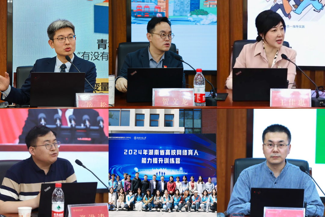 训练营共设置了五场专题讲座、两场“湘思育人·思享会”。专题讲座邀请了全国网络教育名师、山东理工大学岳松,全国网络教育名师、长沙师范学院贺文龙,吉林省高校网络思想政治工作中心执行主任、长春理工大学王佳惠,中国大学生在线新媒体主编、中教华影首席编辑张洪涛,教育部易班产品经理、青梨派产品负责人张睿先后从青年有效沟通、网络作品创作、高校思政工作数字化转型、师生网络素养提升、人工智能赋能高校思政等内容先后开展培训授课。“湘思育人·思享会”分别邀请省内本科院校、二级学院、专科院校网络思政骨干代表和第二批“湖南省高校网络教育名师培育支持计划”入选者从网络育人能力提升、网络育人平台构建、易班建设与管理,以及项目建设情况、工作成效与经验、项目特色与创新等方面开展分享交流。