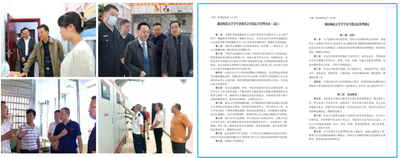 拧紧制度规定“安全阀”。一是加强顶层设计。建立由学校党委领导、学工部门牵头、全员协同配合的学生安全教育格局,逐级、逐岗明确要求、落实责任,确保校园安全管理全方位。二是健全安全制度。围绕学生成长成才需求,制定《ok138cn太阳集团学生安全教育及管理规定》和学生交通安全、实践安全等制度规定,覆盖校园安全管理全过程。三是强化安全管理。定期开展安全教育督导检查,发现突出问题、查找薄弱环节,建立学生安全工作台账,完善整改流程,坚决防控学生安全事故发生,打通学生安全教育全链条。
