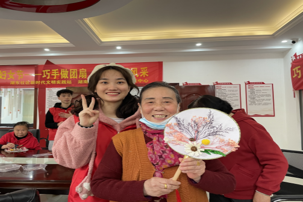 (通讯员 郭校语 陈兴宇 石卓)为推动社会主义核心价值观落细落小落实,大力弘扬中华民族尊老、敬老、爱老的传统美德。3月7日上午,数学与统计学院区校共建项目部(以下简称“数统院区建部”)于望月湖小区湖东社区组织开展“巧手做团扇,巾帼展风采”志愿服务活动,共计六名志愿者参与活动。