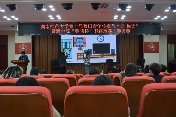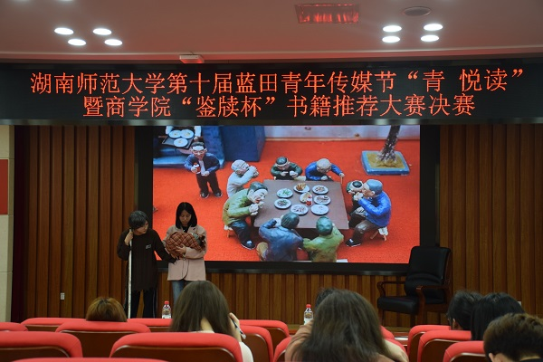 (通讯员 叶君雯 汪子熙 顾乐)3月9日下午,我校第十届蓝田青年传媒节“青·悦读”暨商学院“鉴牍杯”书籍推荐大赛决赛在中和楼129报告厅举行。商学院学工办老师刘智勇、舒怡受邀出席此次活动。此次活动由商学院评论部副部长张麦、干事王俊航主持。