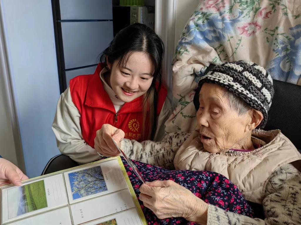 活动开展前,志愿者们先于望月湖街道办事处集合,社区负责人李想向志愿者们简单介绍社区老人的基本生活情况和注意事项,随后一同前往被探访老人家中。到达老人家中后,志愿者们被分成几个小组,成员们各司其职,有的志愿者陪伴老人聊天,为老人梳理头发;有的志愿者则主动帮助老人打扫卫生,整理床铺,为老人们送去了关爱和温暖。志愿服务过程中,奶奶还向志愿者们展示自己曾经的照片,讲述自己年轻时候的故事,拉近了志愿者们和老人之间的距离。离开前,志愿者们纷纷在卡片上写下对爷爷奶奶的祝福,并与爷爷奶奶们合影告别。
