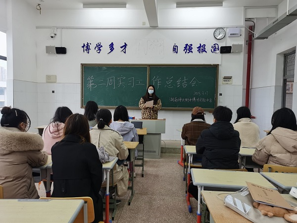 (通讯员 魏玉珊)3月17日中午,文学院赴湖南师大附中博才实验中学湘江校区初中实习队全体队员于博识楼405教室召开第二周例会,实习队队长邓睿和副队长李明霞主持此次工作会议。
