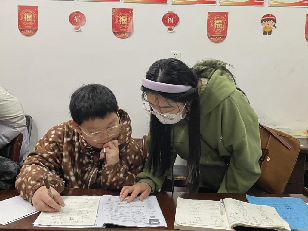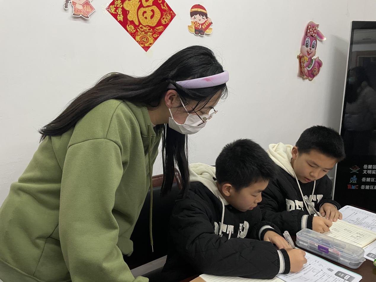 活动开始前,何四玲、张欣仪主动联络志愿者和家长们,并完成对接工作。伴着雨声,孩子们大声朗读各自的课文,并在志愿者的帮助下完成背诵任务。在遇到课业难题时,孩子们提出问题,主动与志愿者交流。志愿者为孩子们讲解作业疑难,提供解题思路和技巧,分享学习经验。活动结束后,志愿者与小朋友拍摄合照并挥手告别。