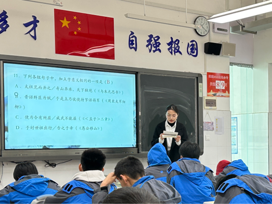 (通讯员何苗肖晔邓睿)3月24日,文学院2020级赴湖南师大附中博才实验中学湘江校区初中实习队正式走入课堂,开展了试卷讲评工作。教学指导老师刘翔、教学指导老师夏新雯、实习队队长邓睿以及张心怡、王红雨、何苗等队员参与该项工作。