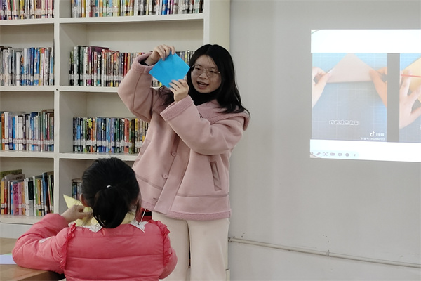 志愿者胡格一步一步地示范了制作一只折纸小老鼠的过程,小朋友们积极动手并用彩笔为“小老鼠”画上了眼睛和胡子,制作出了属于自己的“小老鼠”。活动最后,志愿者和小朋友们一起合影留念。至此,活动结束。