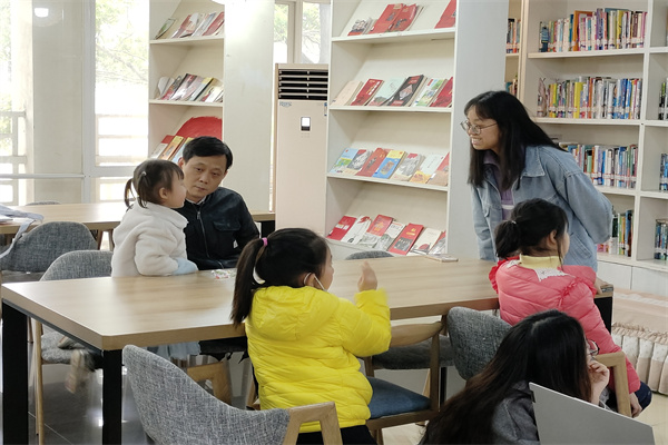 活动开始前,周文朝和志愿者们提前到达创梦者分馆场地,与分馆负责人确认活动流程,并做相关准备工作。志愿者和到场小朋友们互相进行自我介绍。为了拉近与小朋友们的距离,志愿者车锐邀请小朋友们齐唱《幸福拍手歌》,活动气氛升温。