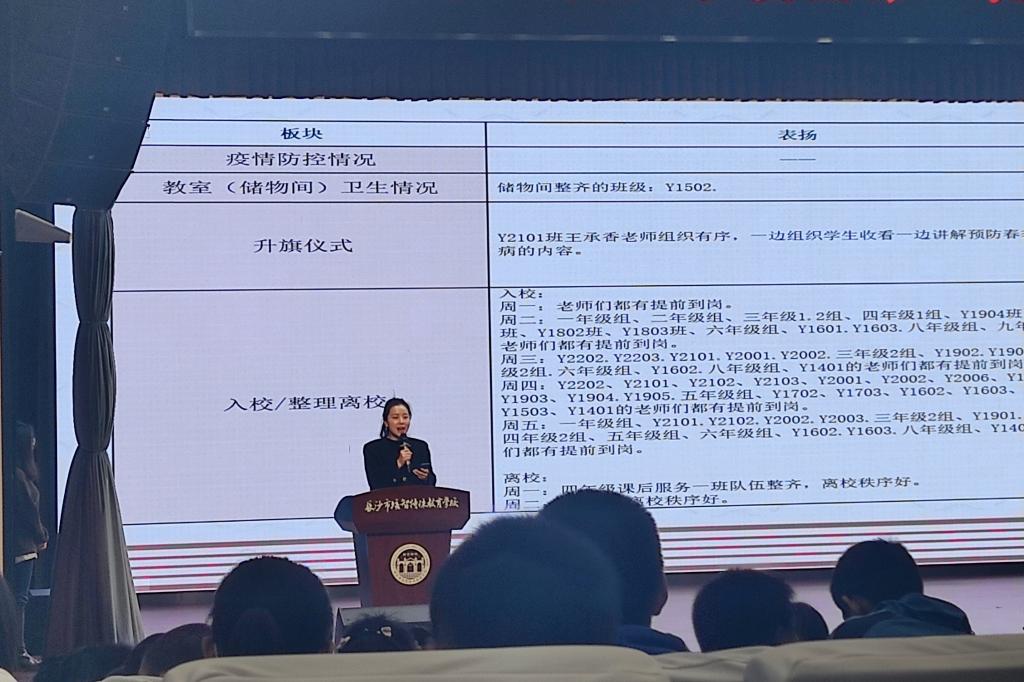 活动伊始,长培全体师生起立,奏唱国歌。随后,四年级协同二组师生进行“关注消防,珍爱生命”主题汇报,全体与会成员观看该组师生录制的视频“火怪物别过来”后,对消防安全知识有了初步的感知与认识。视频播放结束后,四年级协同二组部分师生利用响板与铃鼓,将消防口诀歌以律动形式表演出来,加深学生记忆。在总结环节,长培副校长董艳莎以消防知识抢答赛检验同学们的学习成果。长培课程管理中心常务副主任陶冶宣读上周表彰名单,包括优秀志愿者、勋章班级等奖项,并为获奖学生与班级颁发奖章。