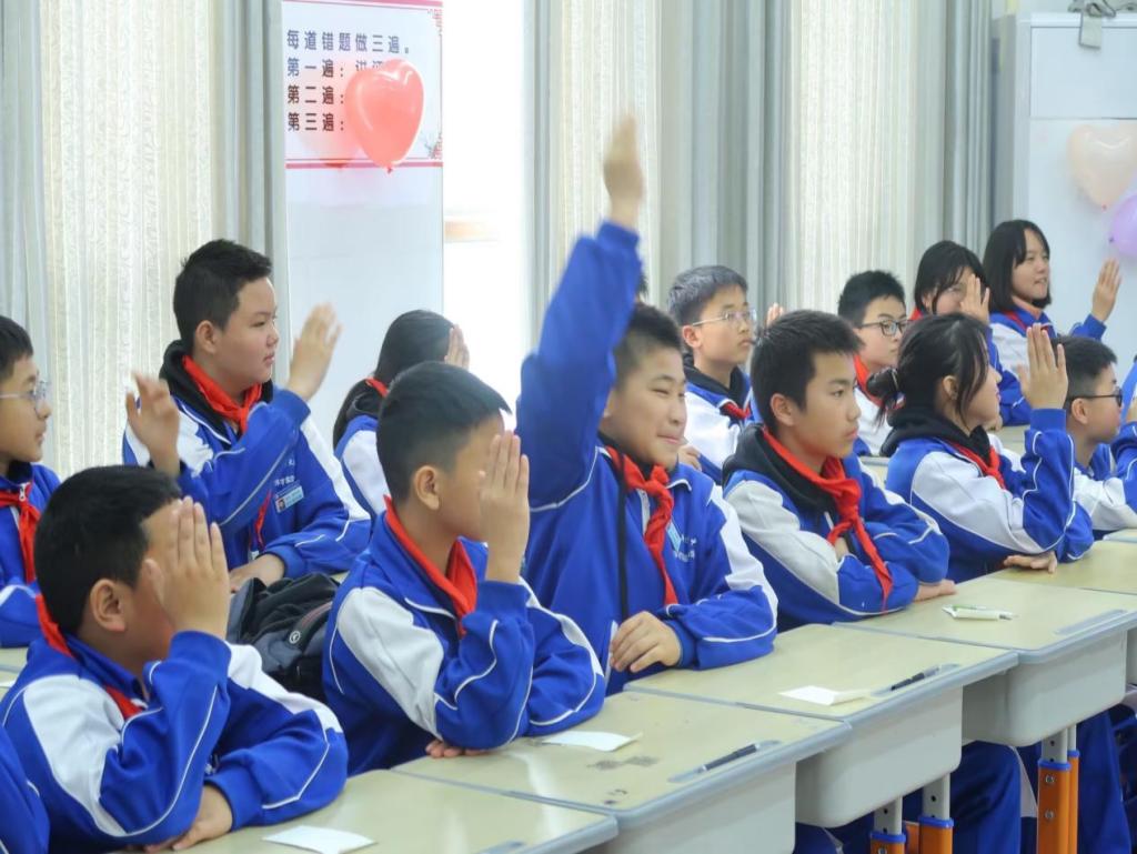队员杨嘉荟在2268班开展了“拒绝焦虑,向阳而生”主题班会。孩子们在小品和情景剧中展现自己的焦虑,又在欢声笑语中释放焦虑,在充满生机与活力的氛围中克服了焦虑,收获了美好,继续向阳生长。