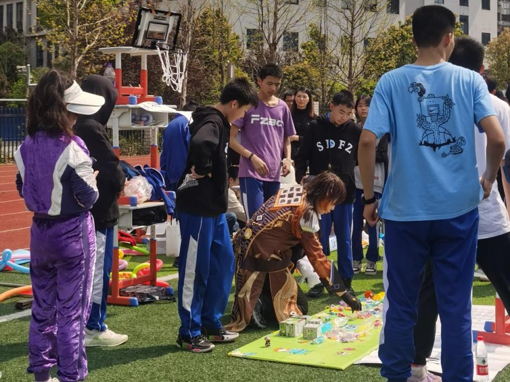 活动前期,为保证义卖活动顺利开展,各班提前做好海报设计、人员安排、物品存放等准备工作。在班主任的引导下,各年级各班分批有序进入田径场,在场上设置摊位、摆放物品。义卖商品皆由师生自愿提供、自主定价,其中以小吃、书籍、手工艺品居多。此外,还有套娃、盲盒、随机舞蹈等独具特色的活动。