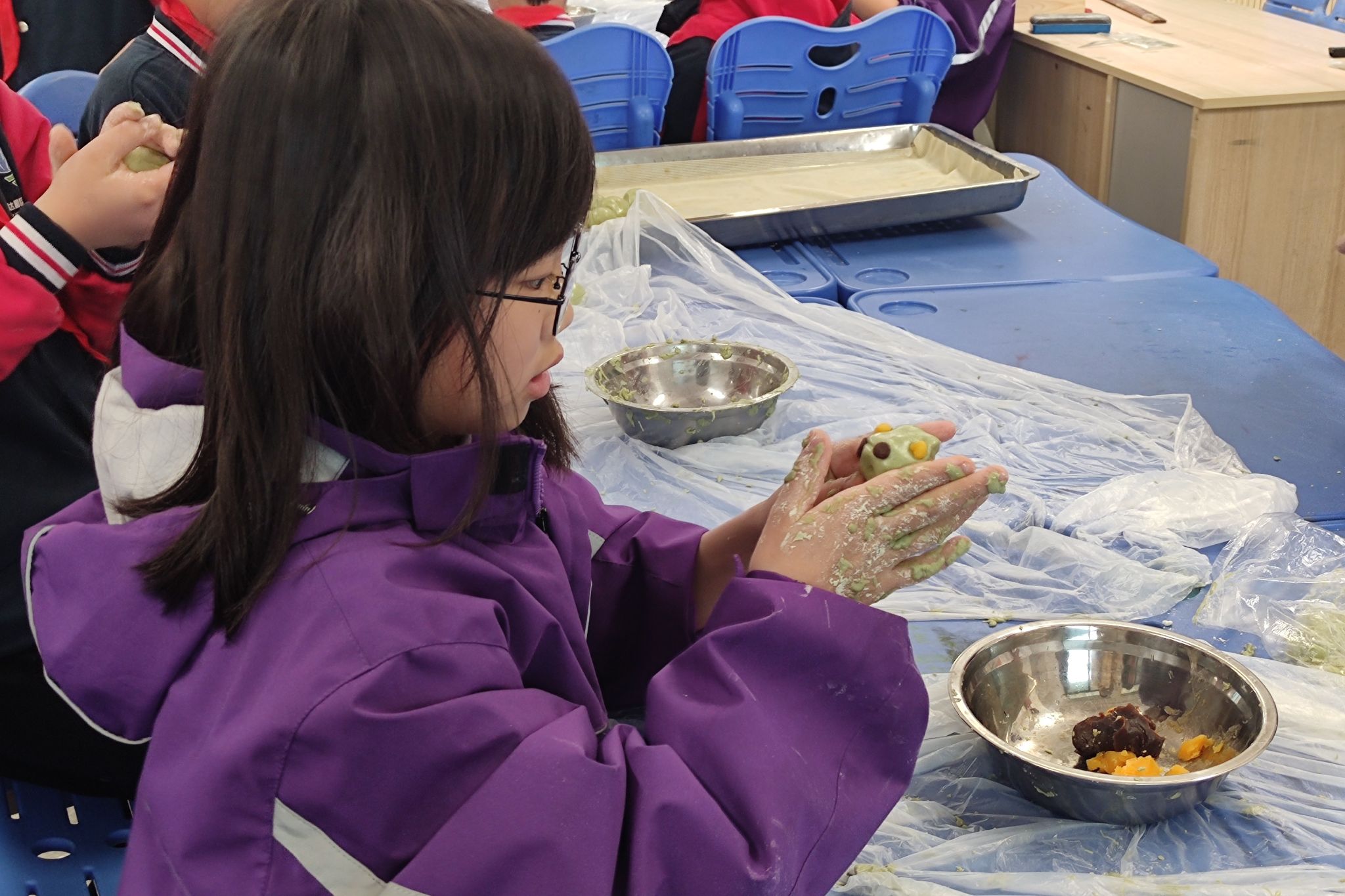 上午,实习队队员赵婧于所在班级授清明节主题班会课,学生们在班主任和实习老师的带领下了解清明传统文化知识、学习包青团的方法。老师们以小组为单位分发一次性桌布和手套、面团和馅料,同学们在有趣的包青团活动中体会到劳动的意义。下午,小学部各班在教室里举行硬笔书法比赛,比赛结束后分批进行户外活动,前往操场做游戏、放风筝,后因下雨,同学们提前回到教室观看纪录片。