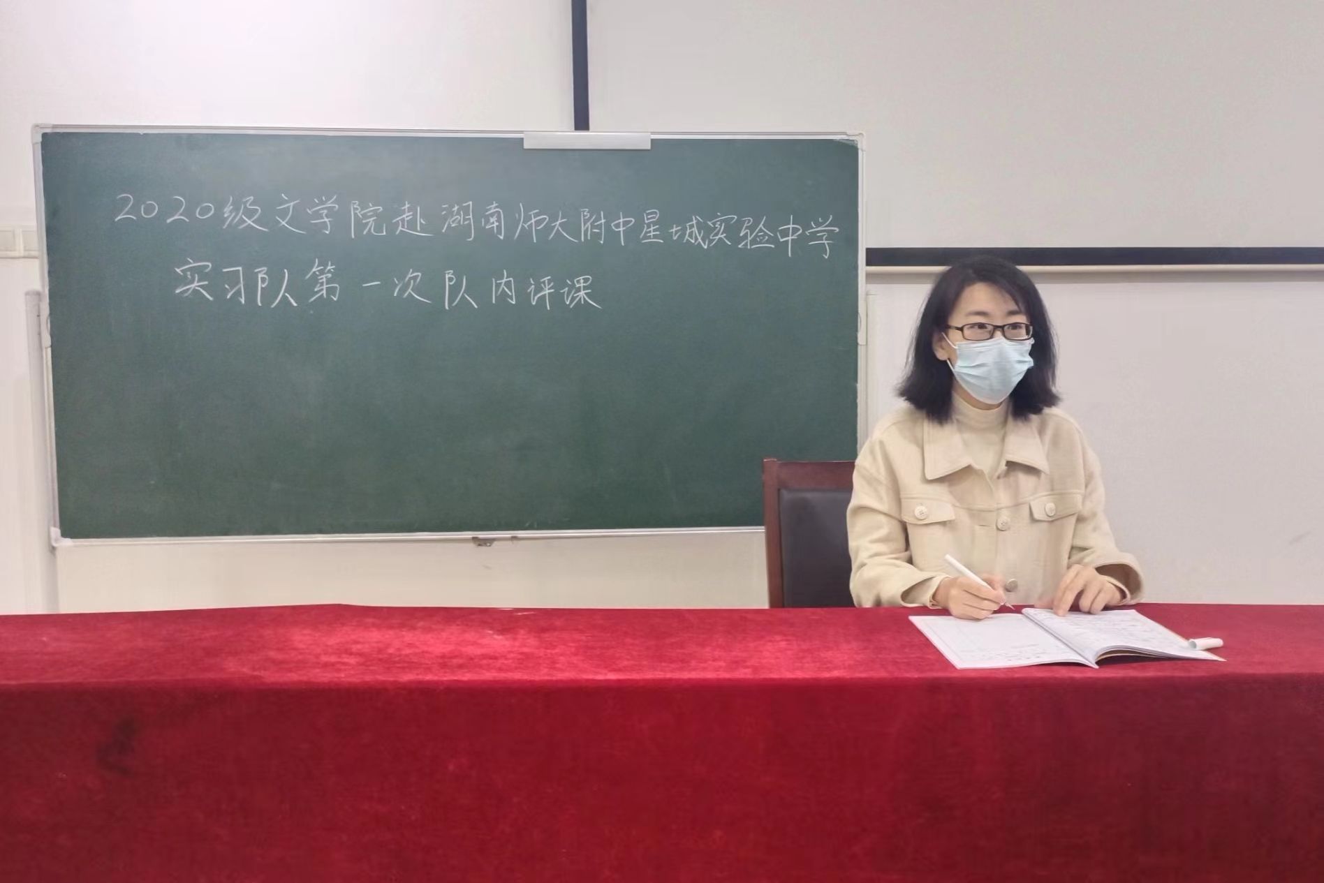 (通讯员 苏拉 白琳萱 欧阳秀玲)4月6日下午,文学院2020级赴湖南师大附中星城实验中学实习队于实习学校集体办公室开展了第一次队内评课活动。此次例会由队长肖欣怡主持,带队老师张晓萌及全体实习队员参加会议。